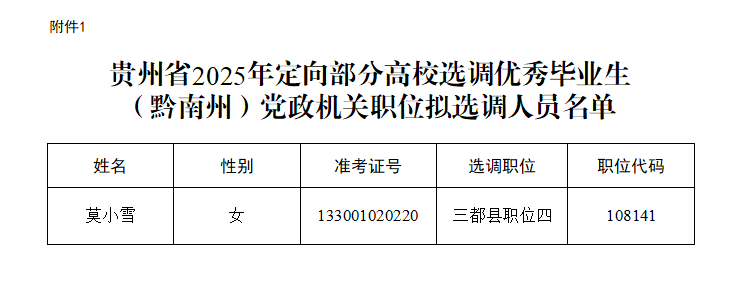 附件:贵州省2025年定向部分高校选调优秀毕业生(黔南州)党政机关职位拟选调人员名单